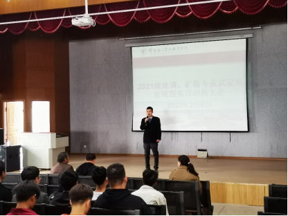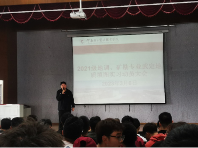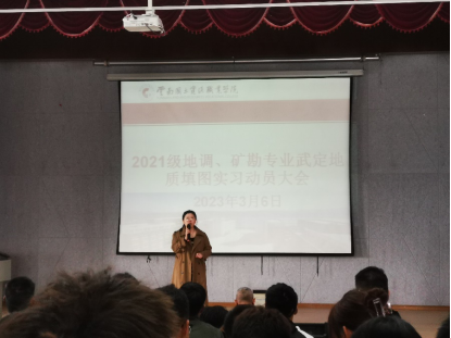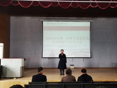 2023年3月6日,世界杯官方网站入口2026在笃行楼红山讲堂召开了2021级地调、矿勘专业武定地质填图实习动员大会。大会由世界杯官方网站入口2026党总支书记李倩老师主持,参加会议的还有公司副经理(主持工作)程先锋老师、党总支副书记徐永全老师、教务处实训科科长康仕林老师、地调教研室主任应玺老师以及参加此次实习的指导老师和辅导员老师。