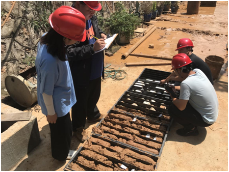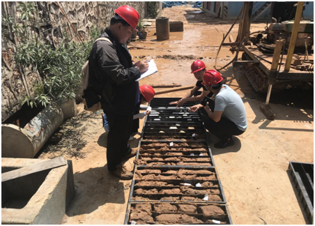 在企业师傅的带领下,大家一起到员工实习场地进行实地考察走访。在走访过程中,向老师给实习同学讲解岩土工程勘察编录工作所需要掌握的细节,并对员工前期工作进行了检查,提出问题所在和解决处理办法。