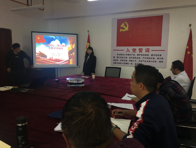世界杯官方网站入口2026党总支书记袁佳同志强调,本次支部书记讲课活动,是根据《中共云南省委关于开展第二批“不忘初心、牢记使命”主题教育的实施意见》(云发﹝2019﹞38号)、中共2026世界杯官方网址委员会“不忘初心、 牢记使命”主题教育领导小组办公室关于在 “十一”前开展党支部书记讲党课活动的通知(云国土公司教办〔2019〕4 号)要求,为了更好地贯彻落实、中央、省委和公司关于主题教育的指导思想和具体要求,更好的强化主题教育的领导责任、将本次主题教育落到实处、取得实效,让全体党员明确目标,清楚任务,掌握步骤和方法,特召开本次各支部的专题党课活动。我们要认真学习支部书记讲课内容,将“不忘初心、牢记使命”主题教育中重点学习的《中国共产党章程》、《习近平关于“不忘初心、牢记使命”重要论述选编》、《习近平新时代中国特色社会主义思想学习纲要》等书籍,认真研读、做好笔记。牢记共产党人的初心和使命,将所学党的知识中的要点、精髓牢记于心,并用于指导实际工作。