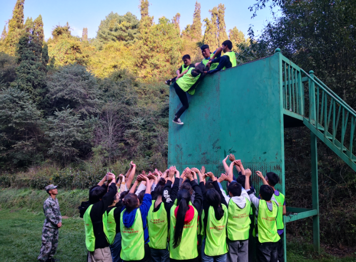 早上9点,在绵绵细雾中户外拓展活动正式拉开序幕。开始前,教官给大家进行了一系列有趣的热身远动,旨在于攻破人与人之间的隔阂,建立彼此信任的基础,营造团队快乐和谐的气氛。随后,按照教官的指示,大家随机分成两个队,在于小队为核心的基础下完成了“狭路相逢”、“鼓动人心”、“过电网”、“毕业墙”等全部挑战项目。