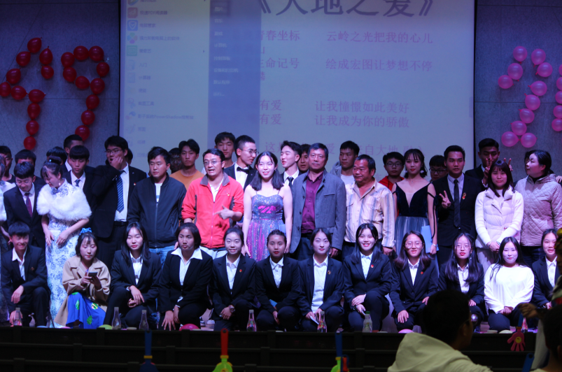晚会现场,两首由老员工艺术团、19工勘班带来的歌曲《嘿姑娘》、《迷途羔羊》升级了现场的气氛。接着19环工2班带来的串烧舞蹈《为舞而生》迎来了现场呼声阵起,两人合唱《爱如潮水》、一场情景剧《论老员工的艰苦奋斗与信念》让大家读懂老员工、舞蹈《初见》、民族舞《北京的金山上》可谓是一场盛宴,一首《春风十里》也是敲击着同学们的心灵。