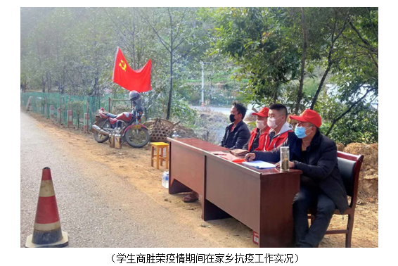 “现代学徒制”顶岗实习员工17地灾1班商胜荣同学,疫情期间在家乡云南保山市昌宁县耈街乡挖沙村,听闻村委会成立昌宁县党员先锋队,并设点进行体温监测和出入排查工作,作为村里老员工的他,立刻主动报名参加,以实际行动冲上抗击疫情的前线,他说到:“能够为抗击疫情做一些力所能及的事情,是我的荣幸,也是我作为老员工的使命和责任。我现在是入党积极分子,我要通过自己的实际行动争取早日成为一名合格的共产党员,为国家为家乡做更多有意义的事情!”目前,商胜荣同学在中国有色金属工业昆明勘察设计研究院进行“现代学徒制”顶岗实习。