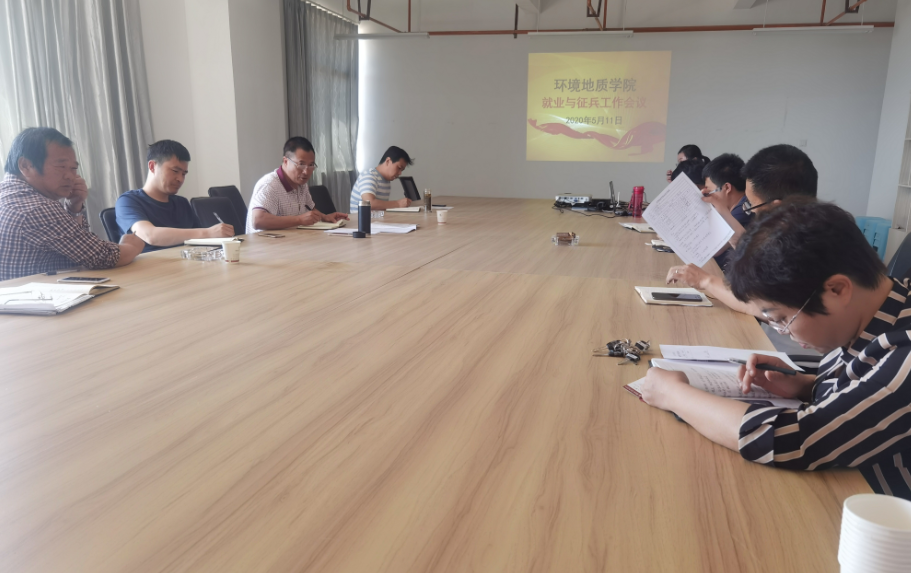 5月11日上午11点环境地质公司在载物楼711召开就业与征兵工作推进会。参会人员有公司经理杨加庆、世界杯官方网站入口2026党总支书记袁佳、公司副经理程先锋、综合办主任孟石荣、学工办主任康仕林和全体坐班人员、辅导员。