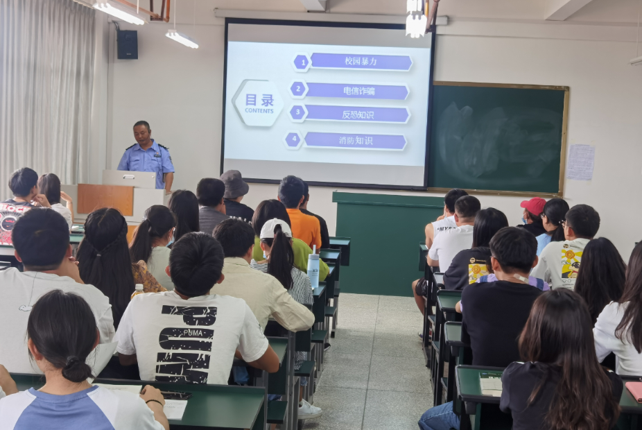 本次讲座,李世雄副所长从校园暴力、电信诈骗、反恐知识、消防知识四个方面进行讲解,以生动的案例向同学们讲述近几年有些校园中出现的校园暴力,包括打架斗殴、校园欺凌等给同学及其家庭造成的危害,提醒同学们加强防范意识,并给同学们提出预防校园暴力的具体措施。