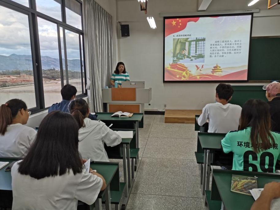 在《中国共产党的指导思想》的党课培训中,就业处副处长、支部组织委员杨晓曦同志向同学们讲解了毛泽东思想是马克思列宁主义在中国的运用和发展,邓小平理论是马克思主义在中国发展的新阶段,掌握习近平新时代中国特色社会主义思想是马克思主义中国化的最新理论成果。