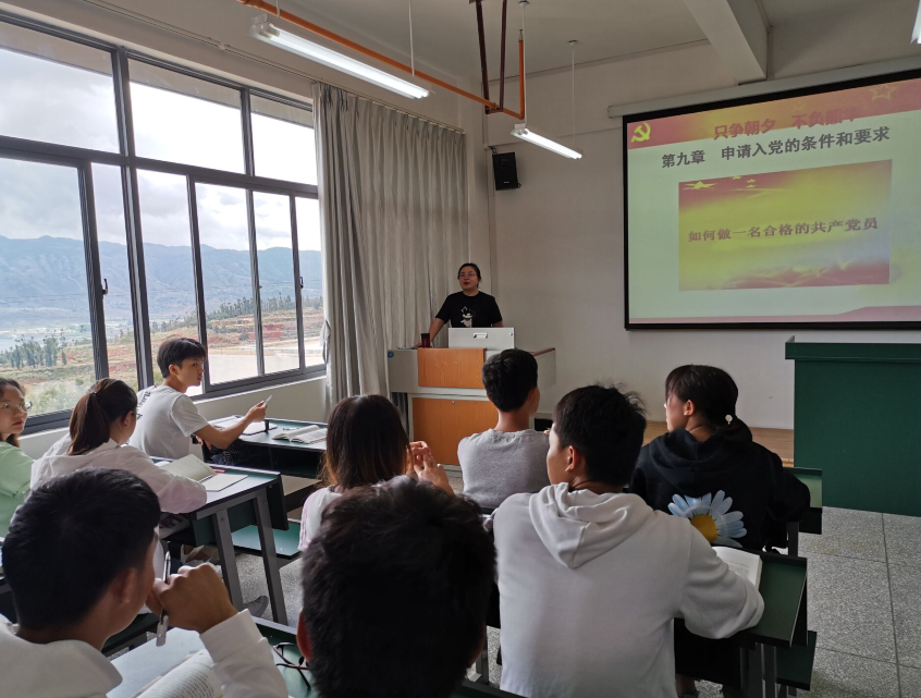 在《申请入党的条件和要求,发展党员的程序和手续》的党课培训中,政治辅导员熊欢同志要求同学们了解并明确申请加入中国共产党的基本条件,掌握做一名合格的共产党员的基本要求。