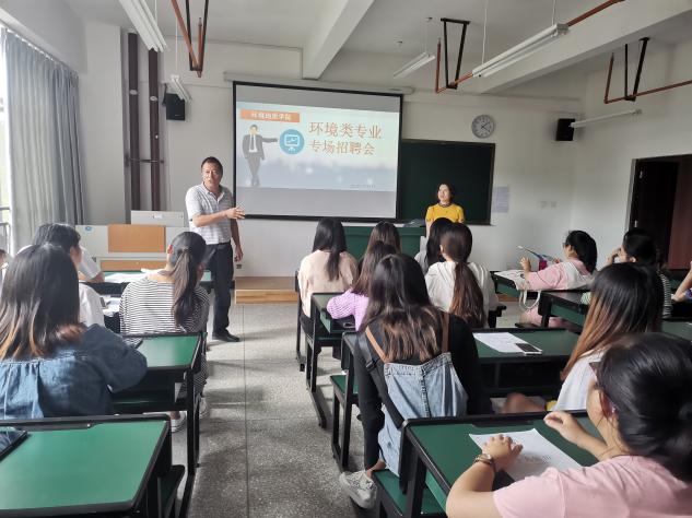 2020年7月7日环境地质公司邀请云南坤发环境科技有限公司到校举行专场招聘会,到达招聘会现场的有:公司董事长纪斌、公司人事总监许芸女士等;环境地质公司经理杨加庆、学工办主任康仕林等;2018级环境类专业员工90余人。