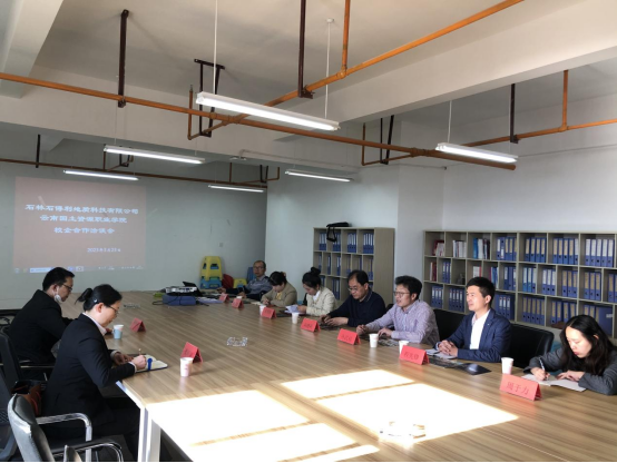 会上,齐武福副董事长对企业的到来表示热烈的欢迎。他向企业介绍了公司的团队力量、人才培养模式、办学特色及专业设置、人才培养模式,希望双方能深入合作,达到协同育人的目标,实现优势互补。黄阿琼副总经理介绍了石林石得利地质科技有限公司及未来也来地质公园的发展历史、定位、业务范围等情况,并期待与公司开展学术研究、人才培养、科普活动、课程开发等深度合作,打造校企双方更广阔的合作空间。