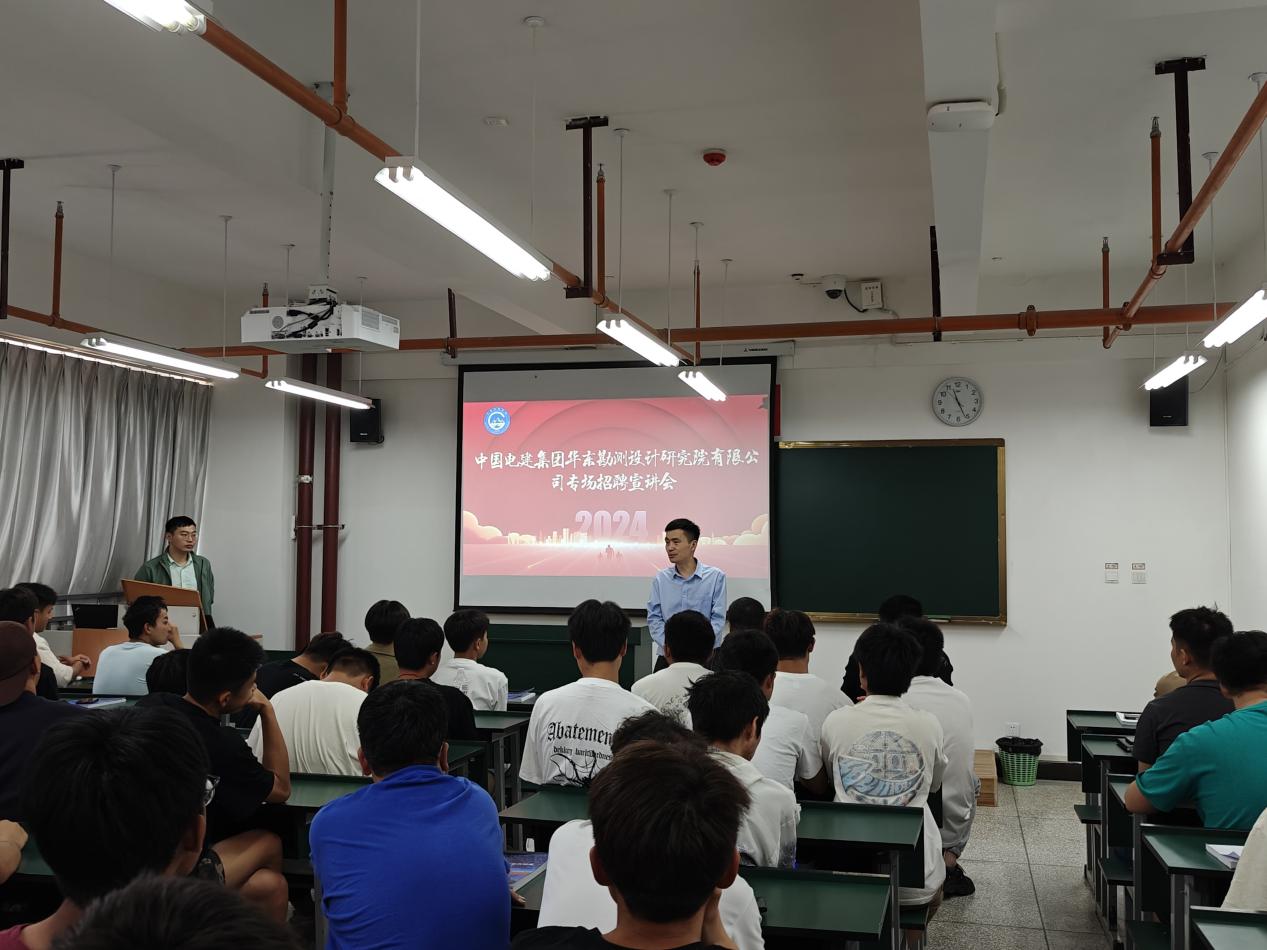 宣讲会上,程先锋经理介绍了中国电建集团华东勘测设计研究院有限公司基本情况。他指出,中国电建集团华东勘测设计研究院有限公司是中国最早成立的勘测设计院之一,为国家大型综合性甲级勘测设计研究单位,业务范围包括水电与新能源、城乡建设、生态与环境等领域,努力打造具有工程全过程智慧化服务能力的一流国际工程公司。华东院现有员工近5000人,拥有各类高级专业技术人员1000余人,持有国家各类注册执业资格证书2000余人次。希望同学们树立和保持正确积极的择业就业观,积极应聘,珍惜每一次求职机会。