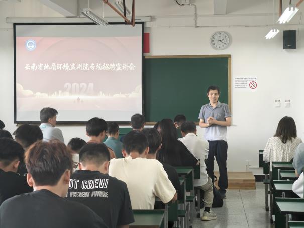 交流座谈前,云南省地质环境监测院到世界杯官方网站入口2026开展了专场招聘宣讲会并组织了面试,世界杯官方网站入口202622级环境地质工程、地质灾害调查与防治、地质调查与矿产普查、矿产地质勘查、环境监测技术专业员工共计100余人参加宣讲会。