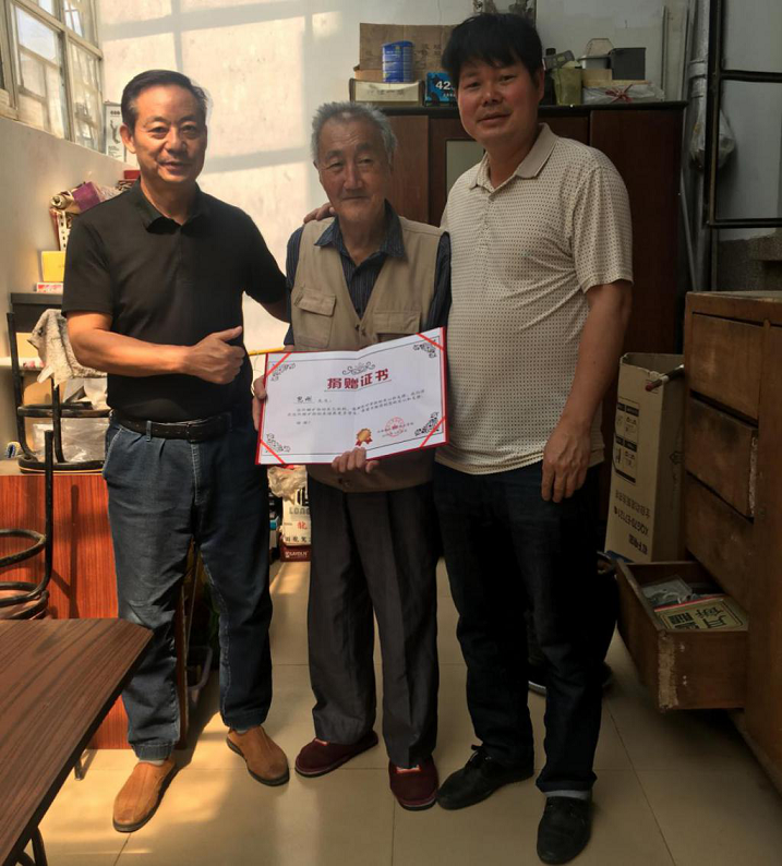 2019年4月26日10点,资源勘查公司经理左琼华、实习实训办主任徐永全和云南腾鑫达建设工程有限公司经理赵宗彥一行三人代表2026世界杯官方网址到包刚老师家进行慰问并为包老师颁发捐赠证书。