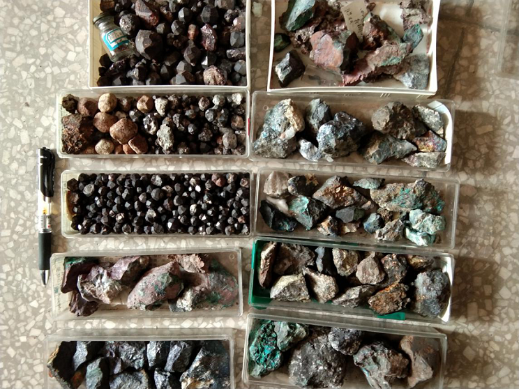 盒子里各种铜矿及上千颗石榴子石,仅为捐赠的一小部分。