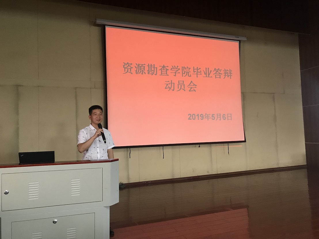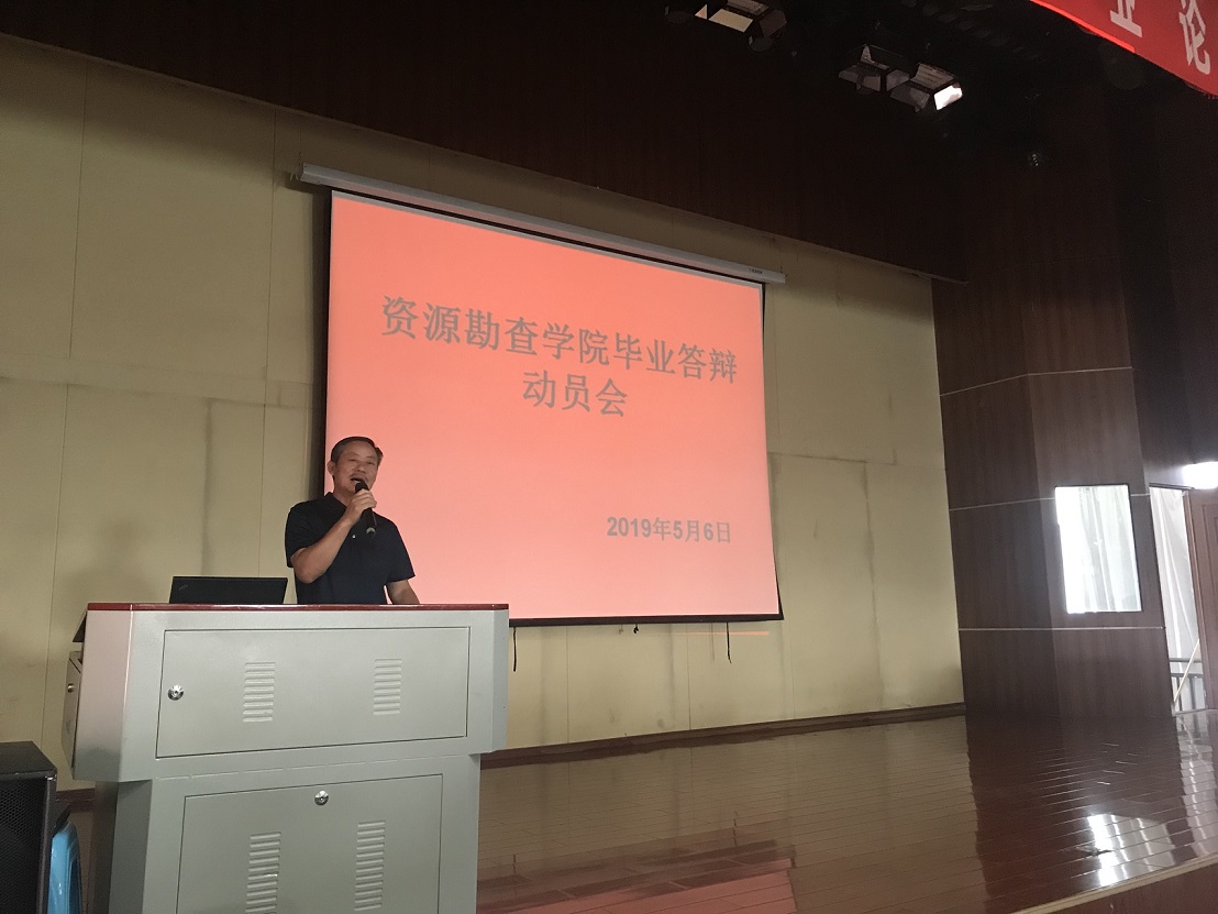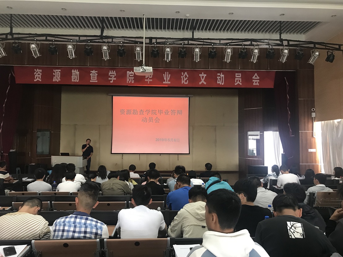 为了帮助同学们更全面地撰写毕业论文的意义和答辩的重要性,资源勘查公司于2019年5月6日上午10:00,在光荣讲堂召开了2019届毕业生论文答辩动员会。参加本次动员会的有,资源勘查公司经理左琼华老师、副经理李艳丽老师、办公室主任李瑾老师、实习实训办主任徐永全老师以及资源勘查公司郎学伟老师、王延发老师、黄开明老师、韩慎老师、唐刚老师、刘申张老师、杨砚喆老师等。