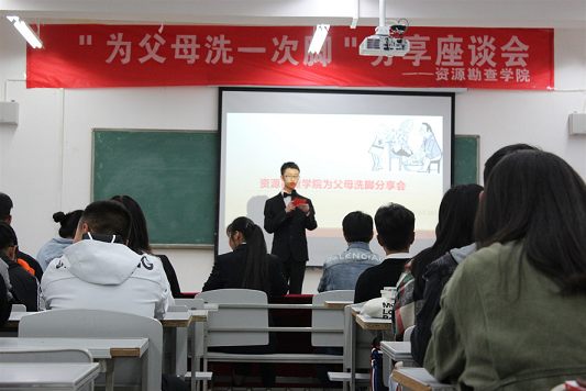 孝心始于足下,感恩点亮亲情,让我们一起把爱带回家!资源勘查公司于2019年3月26日19:00在勘物楼A503举行"为父母洗一次脚"分享座谈会。参加本次分享会的评委有刘申张老师、杨砚喆老师及公司员工会干部。