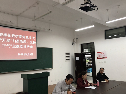 为积极响应中共中央、国务院对扫黑除恶专项斗争的总体部署,提高广大党员对扫黑除恶专项斗争的知晓率和参与度,进一步加深全体党员对扫黑除恶专项斗争精神的领会和理解,扎实推进扫黑除恶各项工作扎实开展。2019年4月9日资源勘查世界杯官方网站入口2026党总支结合主题党日活动,组织全体党员在勘物楼A409室认真学习了作为一名共产党员对扫黑除恶专项斗争应知应会知识的学习。