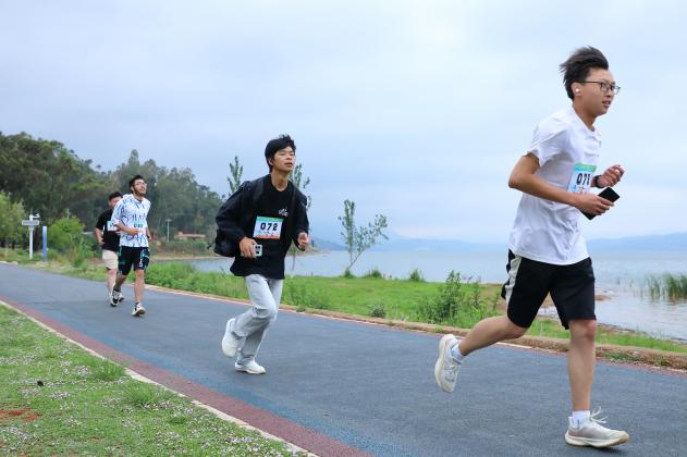 环湖步道上,选手们活力的身影与清澈的湖水交相辉映,形成了一道靓丽的风景线。