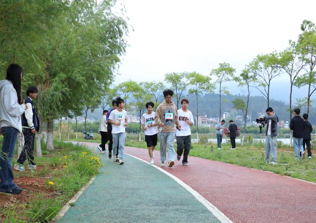 下午14时,选手们站在比赛起跑线上,积蓄着力量、洋溢着青春,整装待发。比赛开始,随着裁判员一声鸣笛哨响,选手们按照指定环湖路线依次出发,整个赛程约3公里。