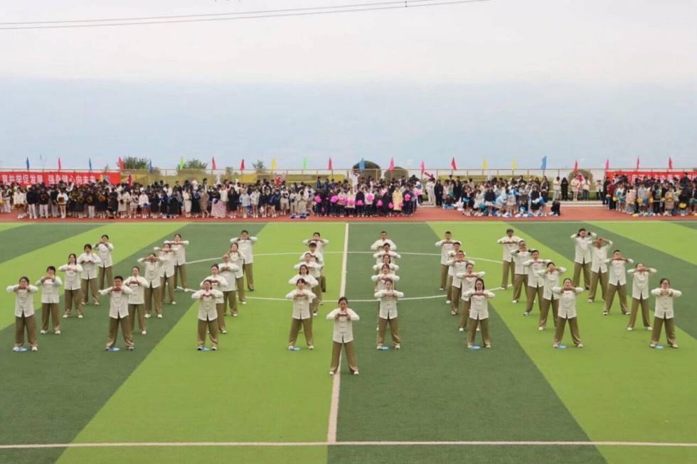 百人啦啦操表演中,同学们身着色彩鲜艳的表演服,动作整齐划一,动感节奏点燃全场,将青春活力与艺术美感完美融合。教师团队的八段锦表演则刚柔并济,一招一式尽显传统文化的深厚底蕴与健康生活的理念。