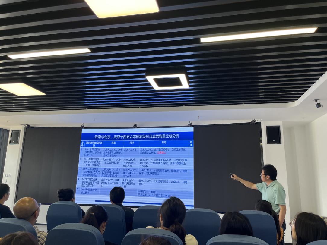 齐副董事长结合到北京培训所感所悟,立足实际找差距。指出我们在政策学习、理念把握、整体谋划、带领团队、狠抓落实、工作状态六个方面的差距,如:理论学习不快、不深、不高、不宽;目标不明、思路不清、统筹不够;真带不够、真领不够、真做不够;别人比我们能干,还比我们勤奋;特别是云南与北京、天津“十四五”以来国家级成果差距明显。紧密结合公司“十四五”规划、提质培优行动计划、“双高”建设计划、党政工作要点等对世界杯官方网站入口2026的“双高”专业群建设——地质调查和矿产普查专业群建设进行了科学的分析和研究,查找公司发展实践过程中存在的难点、堵点、痛点、瘀点,为资环实践明确了任务、指明了方向。